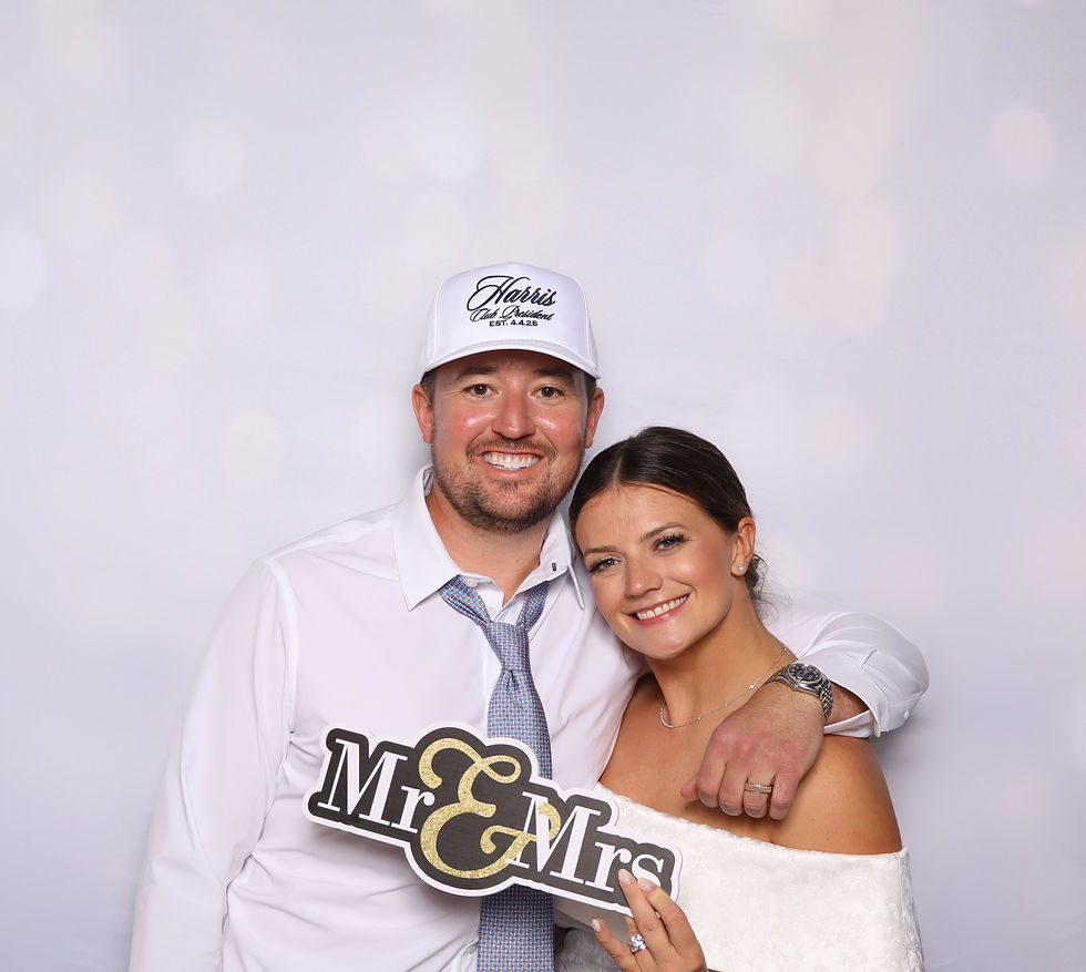 Here’s when the fun begins! After dinner, we bring out the props and switch to one of our glam backdrops. This is when the wedding photo booth really comes to life!
